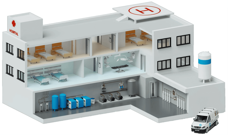 En SEMRO S.R.L., desarrollamos e implementamos sistemas de gases medicinales para hospitales, clínicas y centros de salud, garantizando seguridad, eficiencia y cumplimiento normativo.